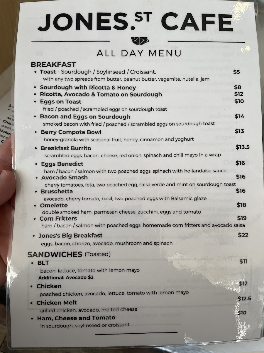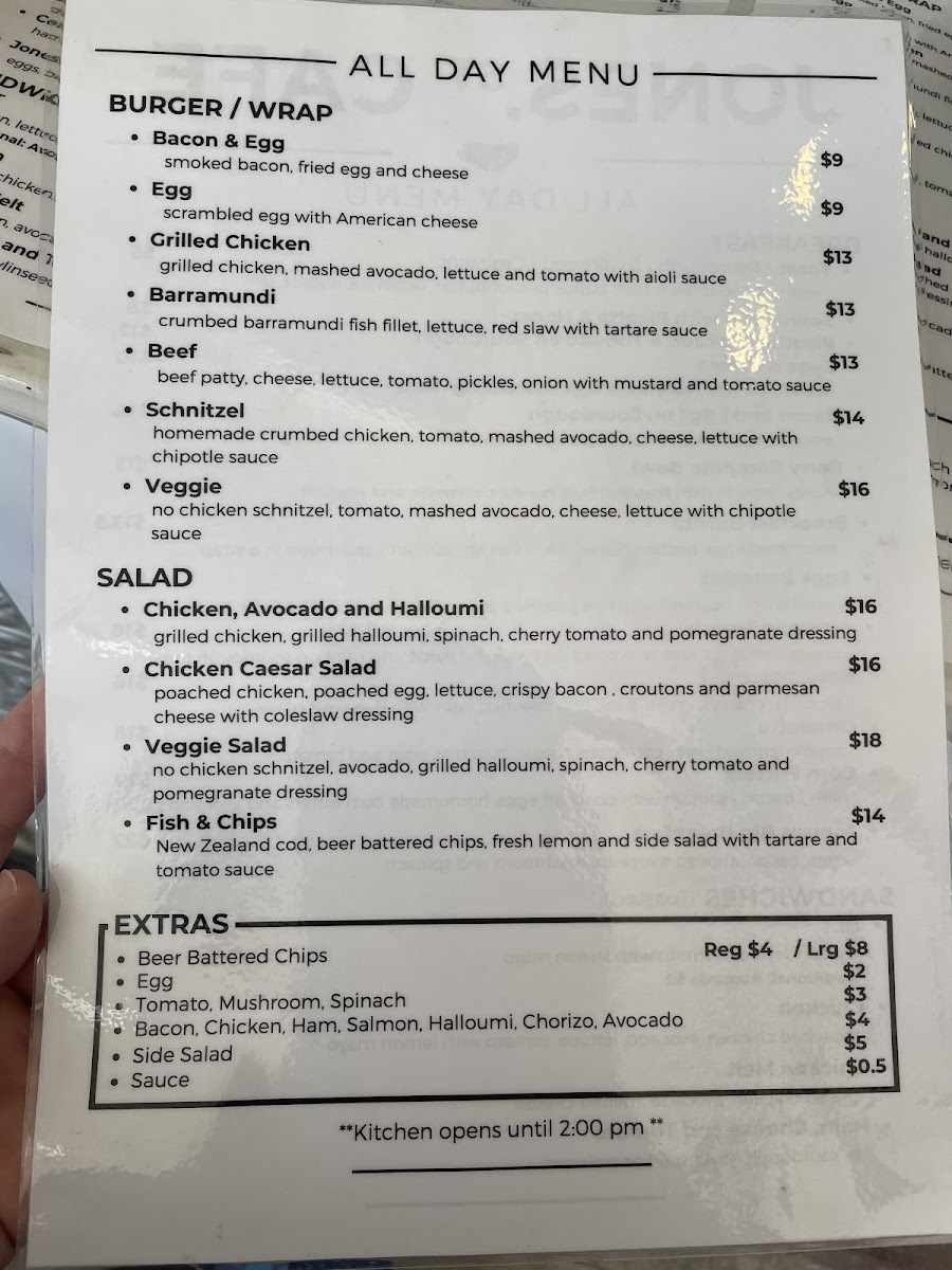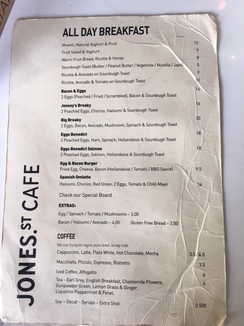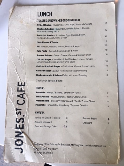 Jones Street Cafe Menu